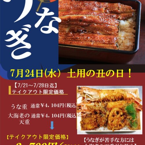 うな重と大海老の天重がテイクアウト限定で特別価格になります(7月21日~7月28...