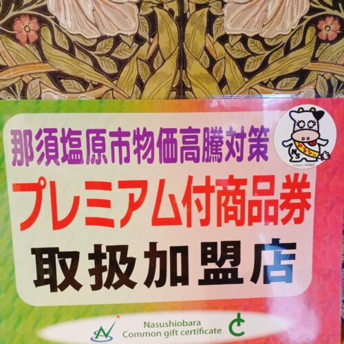 那須塩原市プレミアム商品券お使いいただけます。